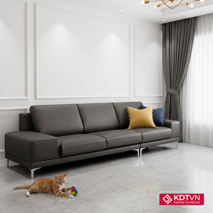 Lựa chọn bọc Da hoặc bọc Nỉ cho sofa phòng khách hiện đại KD135