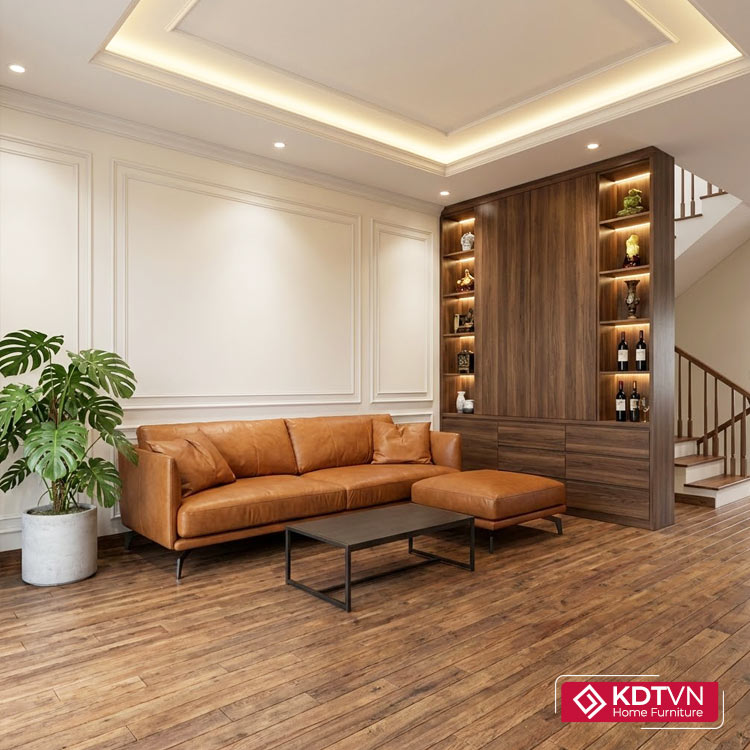 - Bọc da êm ái, sang trọng cho không gian phòng khách