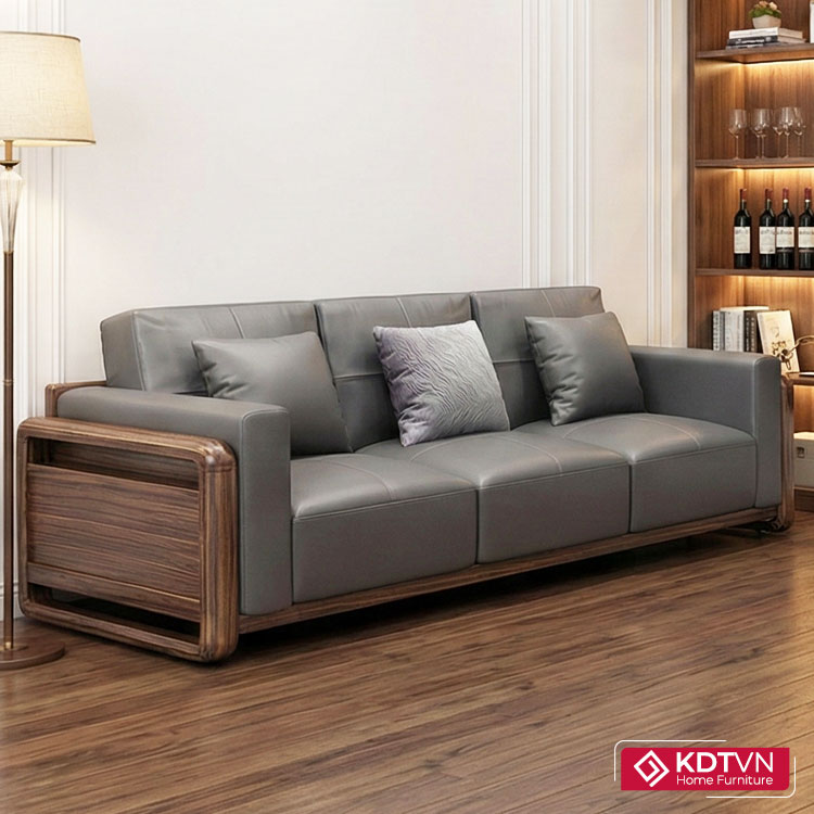 Trang chủ » Ghế sofa » Sofa gỗ » Sofa văng da tay gỗ hiện đại G24V